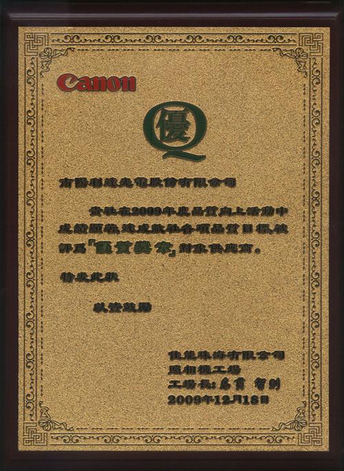 ??????? 12月18日,公司在佳能的供應商“優質獎章”表彰儀式上受到表彰,并由佳能島貫工廠長頒發了優質獎章證書。 |
