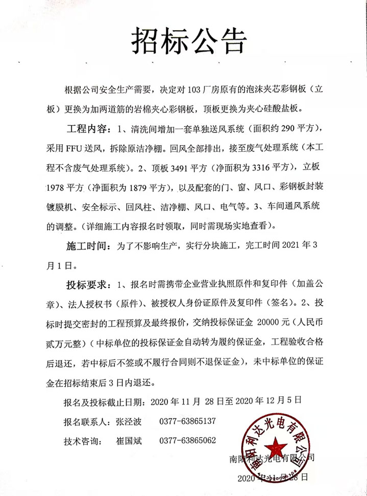 - (2022-09-29)光電新區三期廠房一層裝修施工的招標公告