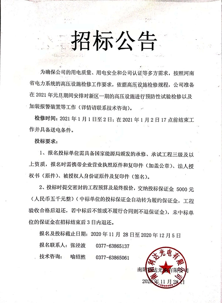 - (2022-09-29)光電新區三期廠房一層裝修施工的招標公告