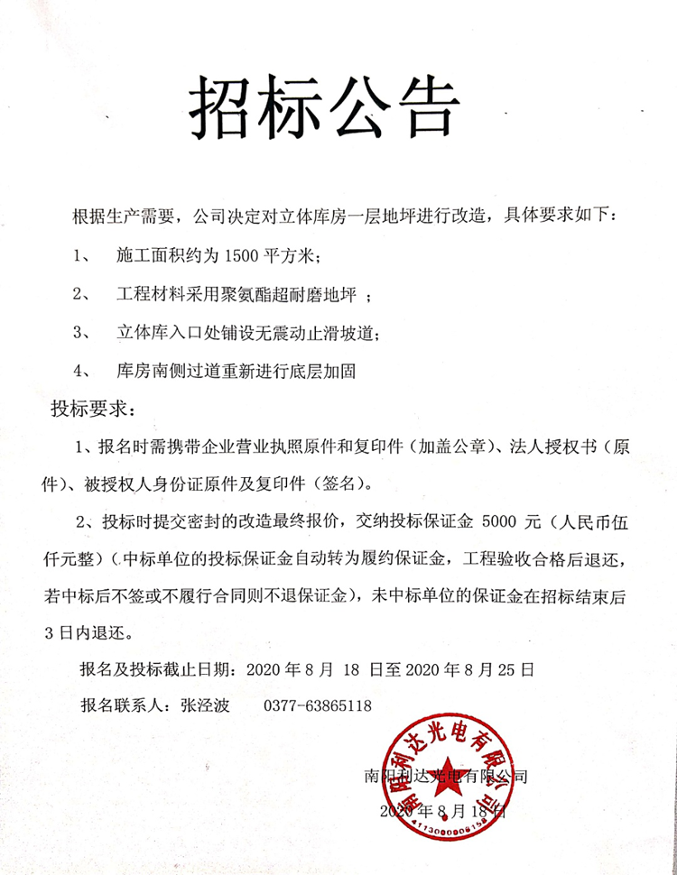 立體庫房一層地坪改造招標公告