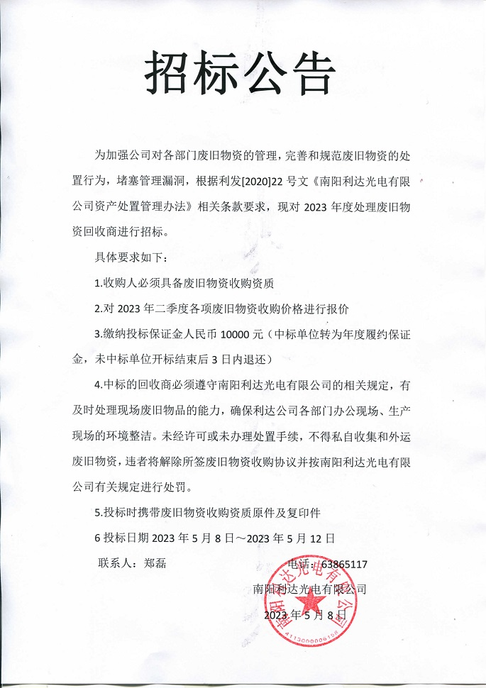 - (2023-11-29)招標公告(合色棱鏡)廢品招標