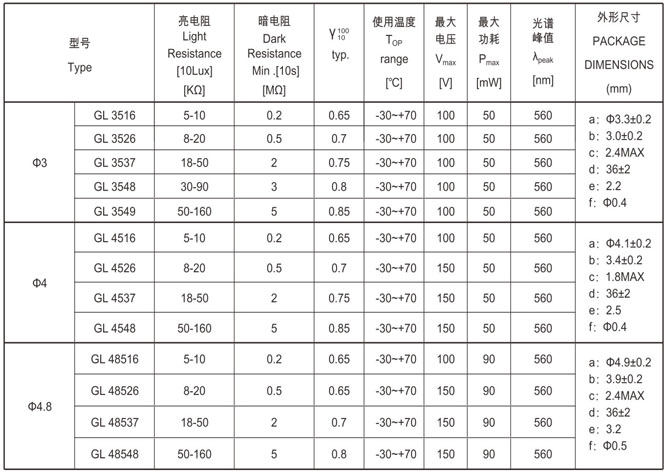 環(huán)氧樹脂封裝型光敏電阻系列1 Resin Package Photocells Series1